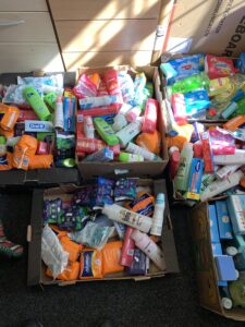 The charity then set up a charity shop, supplying clothing, non-perishable food items, toiletries, etc in bulk. The CIC and the charity then worked with other groups [see partnership section] to get large amounts of items that were then parcelled up and delivered out to families around the city.